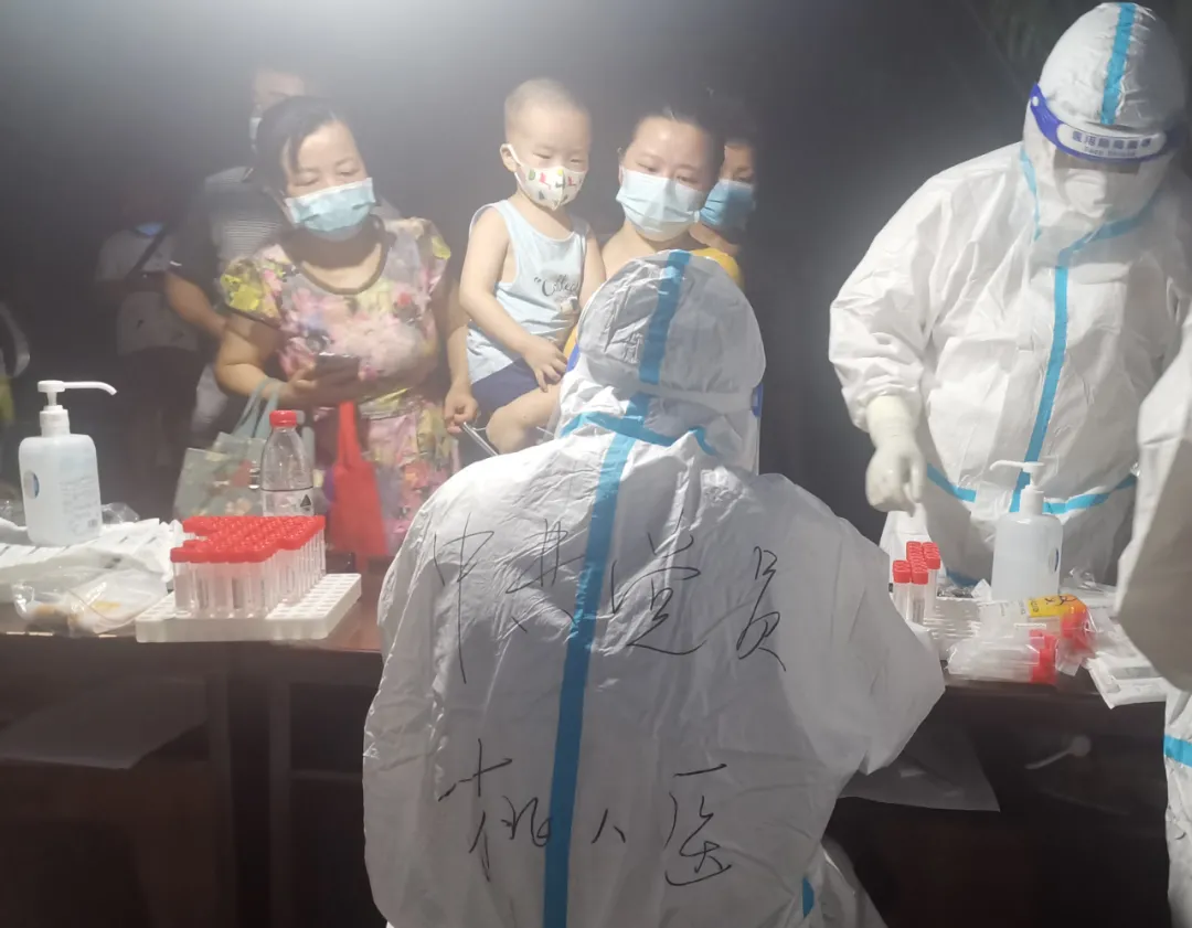 檢測(cè)前,她在自己的防護(hù)服背面寫(xiě)上“中共黨員”四個(gè)字。然后,她迅速穿好防護(hù)服,投入到檢測(cè)工作中。到午飯飯點(diǎn)了,看著前來(lái)檢測(cè)的市民排成長(zhǎng)隊(duì),陶明明對(duì)勸她吃飯的人說(shuō):“我是黨員,我能堅(jiān)持!”