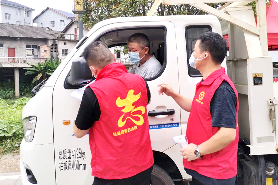 駐落馬洞村工作隊(duì)員在楊溪橋林業(yè)站檢測(cè)點(diǎn)對(duì)出入人員進(jìn)行“四查一詢”