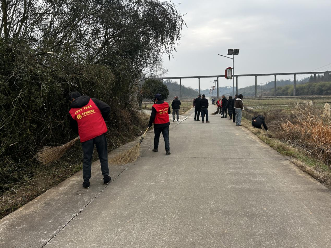 青林回維鄉(xiāng)九龍山村黨員清掃村組道路