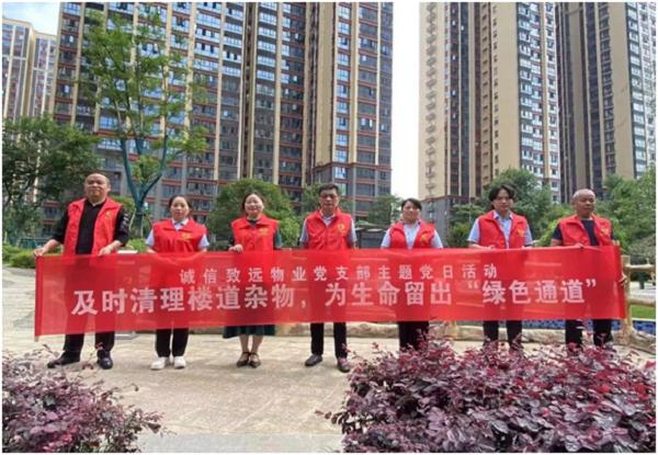 6月6日, 常德市誠(chéng)信致遠(yuǎn)物業(yè)黨支部在誠(chéng)信廣場(chǎng)園區(qū)開展“及時(shí)清理樓道雜物,為生命留出綠色通道”主題黨日活動(dòng)。