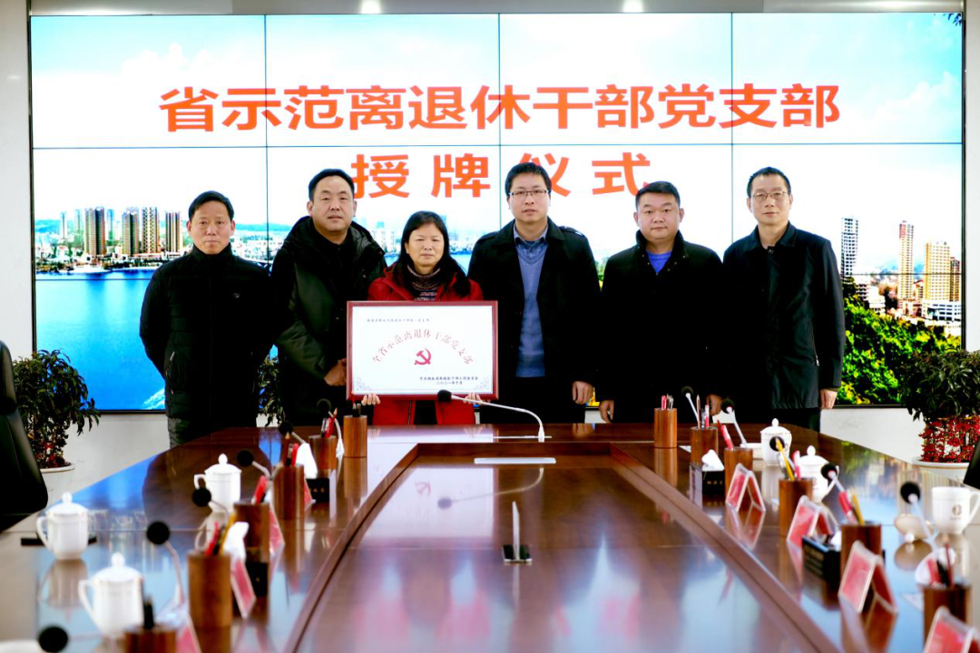 張宇輝為縣財政局離退休干部第一黨支部授予全省示范離退休干部黨支部牌匾